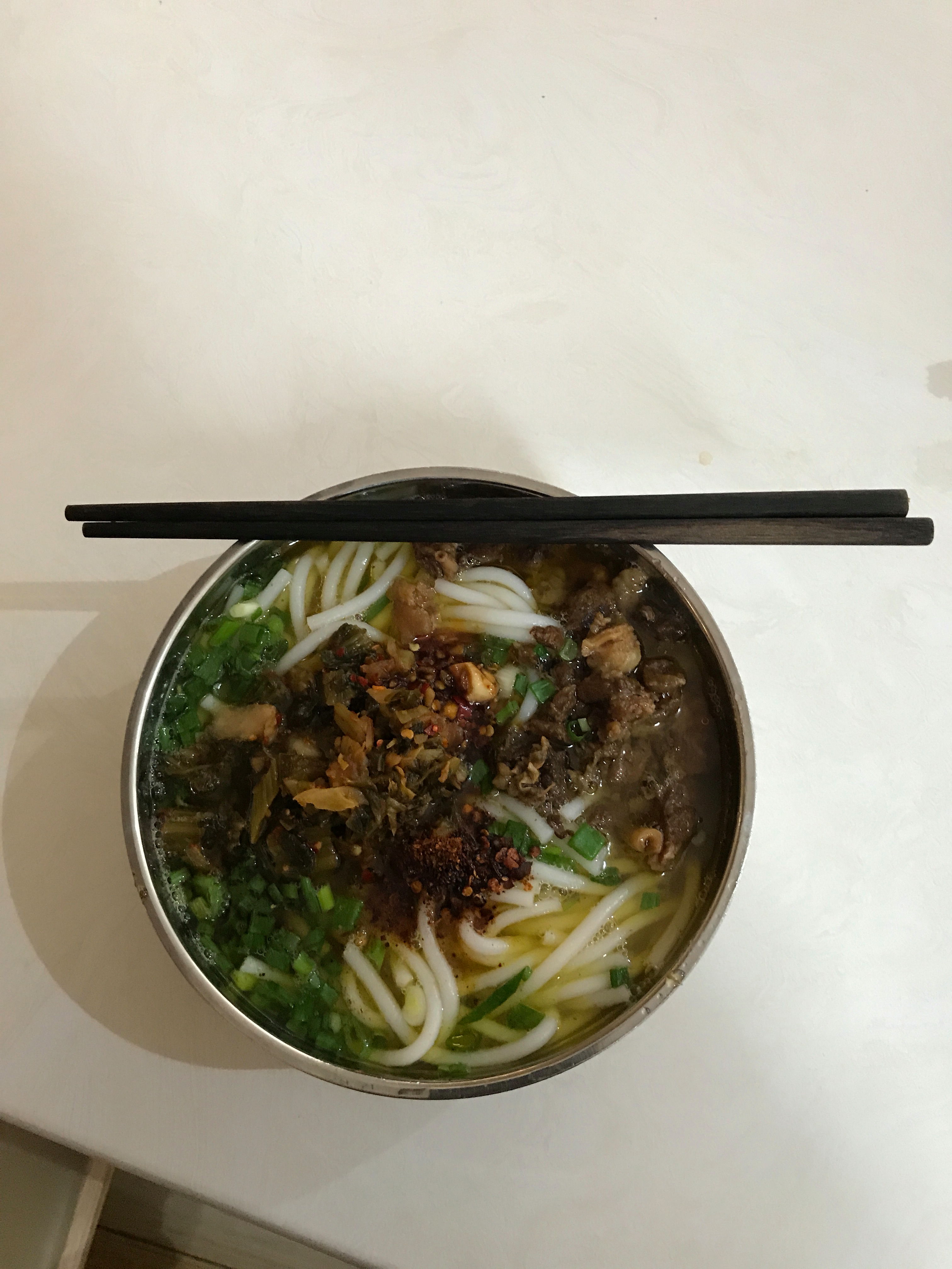 原本想去原来经常吃米线的地方吃东西的,但是在路边看到这家回族的馆子还不错。依稀的小雨在下,肚子有点饿, 所以就想就在这家吃个小碗吧,遇到其他店再吃吧。