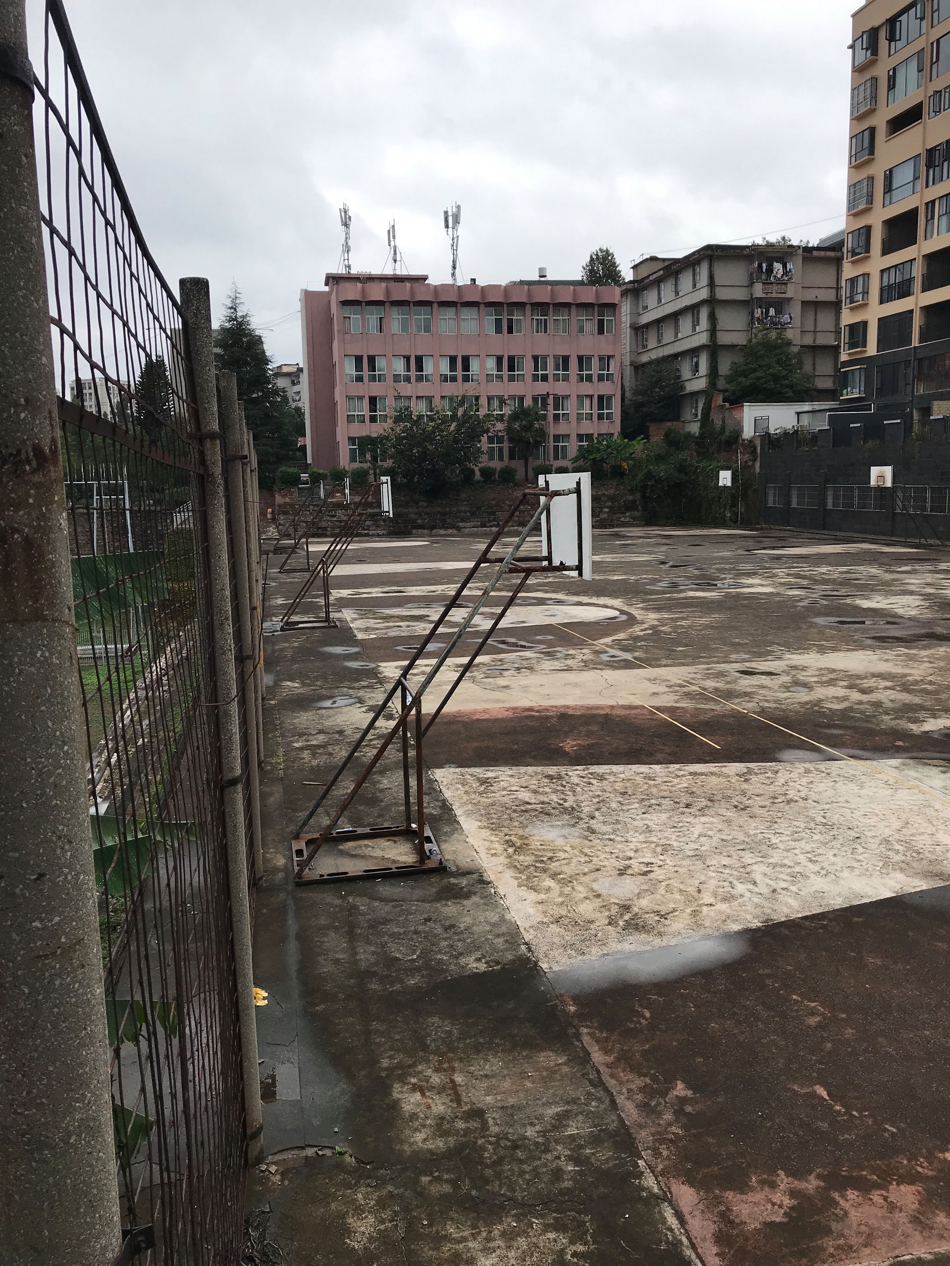 原来的篮球场,更多的人是在踢球。现在,被改造成网球场了。或许原来的生源主要来自云南,所以踢球比较受欢迎,现在生源多了,提高档次了。