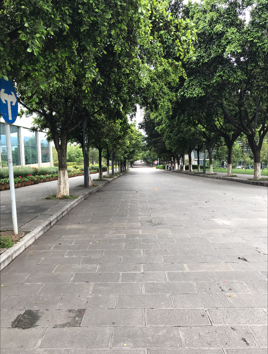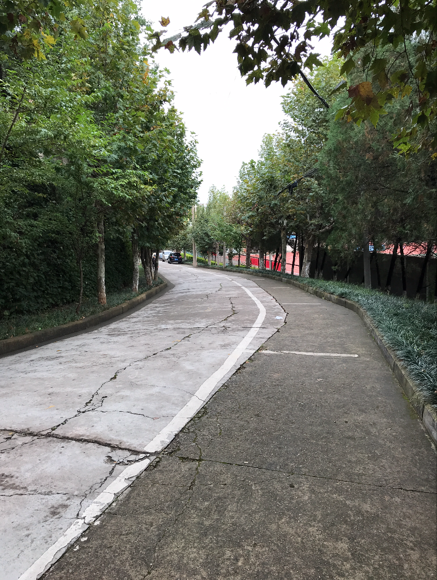 道路两旁的树已经长成了,绿荫大树,我们刚刚过来的时候,还没有,一晃眼十年过去了。